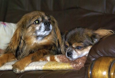 Außerdem wollten wir einen Hund aus dem Tierheim. Er sollte unbedingt klein sein und zu den vorhandenen Vögeln passen, also keinen Jagdtrieb haben. Wir schauten uns um und stießen auf ein Pärchen Tibet-Spaniel, Cindy und Berti. Sie waren 12 Jahre alt und ihr Leben lang zusammen. Schon beim Probespaziergang war ich total in die Hunde verliebt und so haben wir sie mitgenommen. Die lieben Menschen vom Tierheim waren begeistert und meinten so 3 – 4 Jahre hätten die beiden noch vor sich.